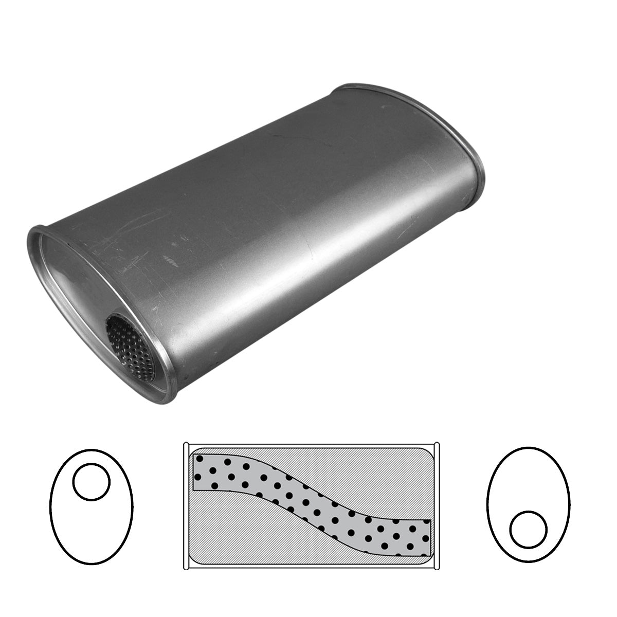 Universal Muffler10" x 4" Oval, 14" Long, 2 1/2"  Offset / Offset Megaflow  No Spigots