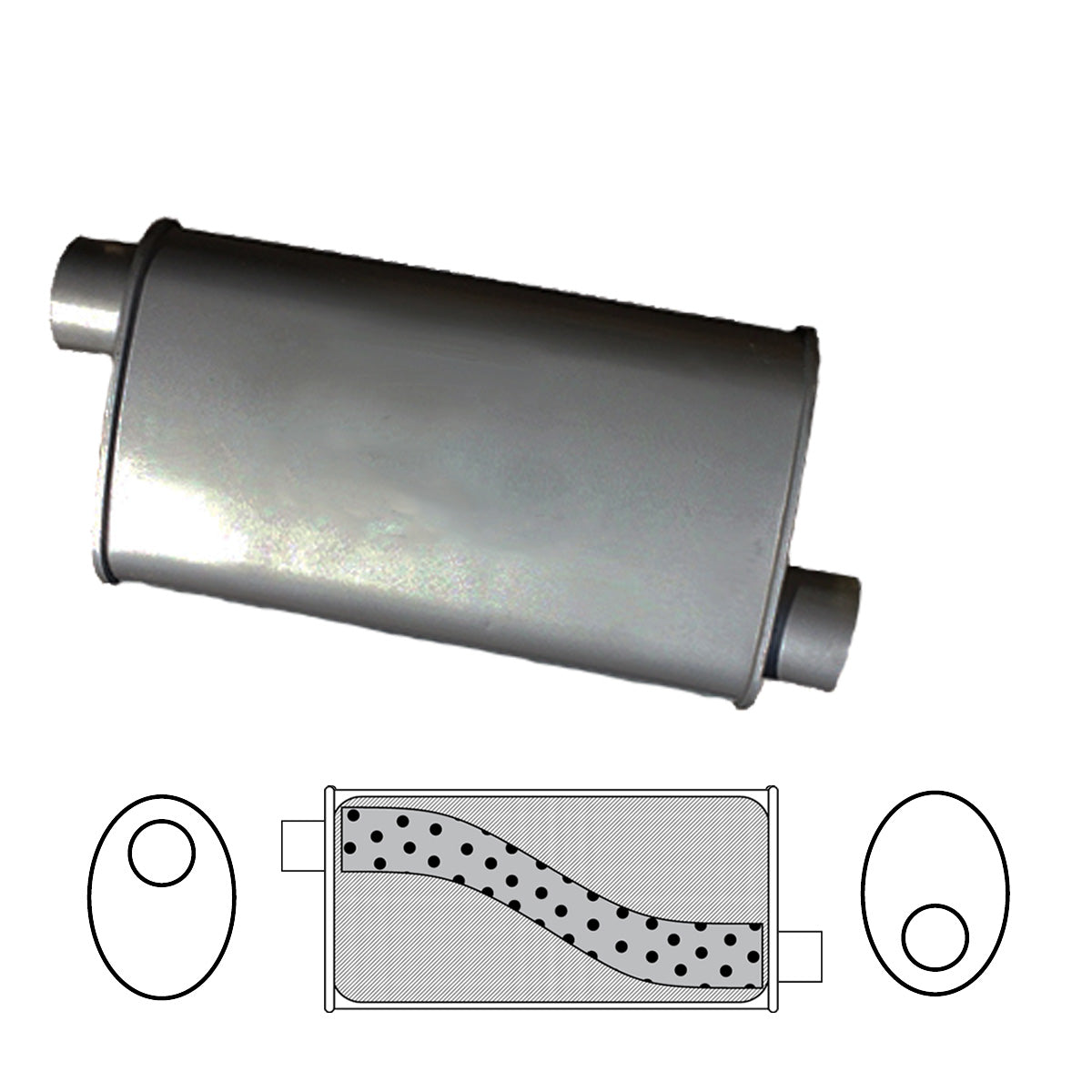 Universal Muffler10" x 4" Oval, 14" Long, 2 1/4"  Offset / Offset Megaflow Glass Packed
