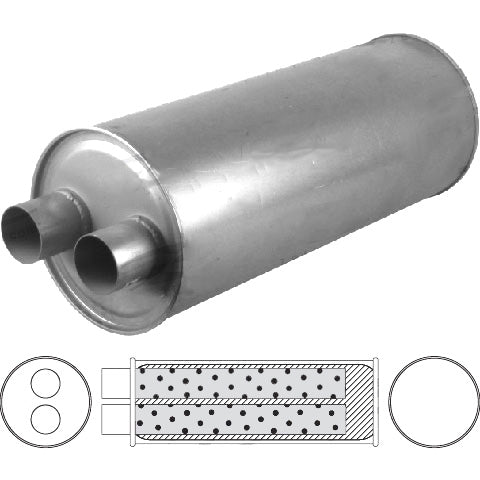 Universal Truck Muffler - 275mm(11") Round, 700mm(28") Long, Internal diameter 075mm(3") In/Out Same End, Open Chambered, Aluminised Steel