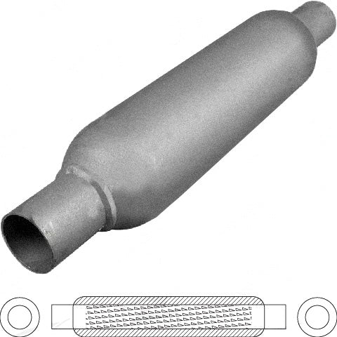 Hotdog - 90mm(3-1/2") Round, 250mm(10") Long, 063mm(2-1/2"), Center Center, Spiral Louvered With Spigots, Mild Steel