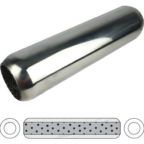 Hotdog - 100mm(4") Round, 300mm(12") Long, 075mm(3"), Center Center, Perforated Without Spigots, Stainless Steel