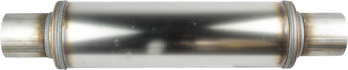 4" Round, 14" Long, 2 1/2", C/C, Mega Power, 409 Stainless