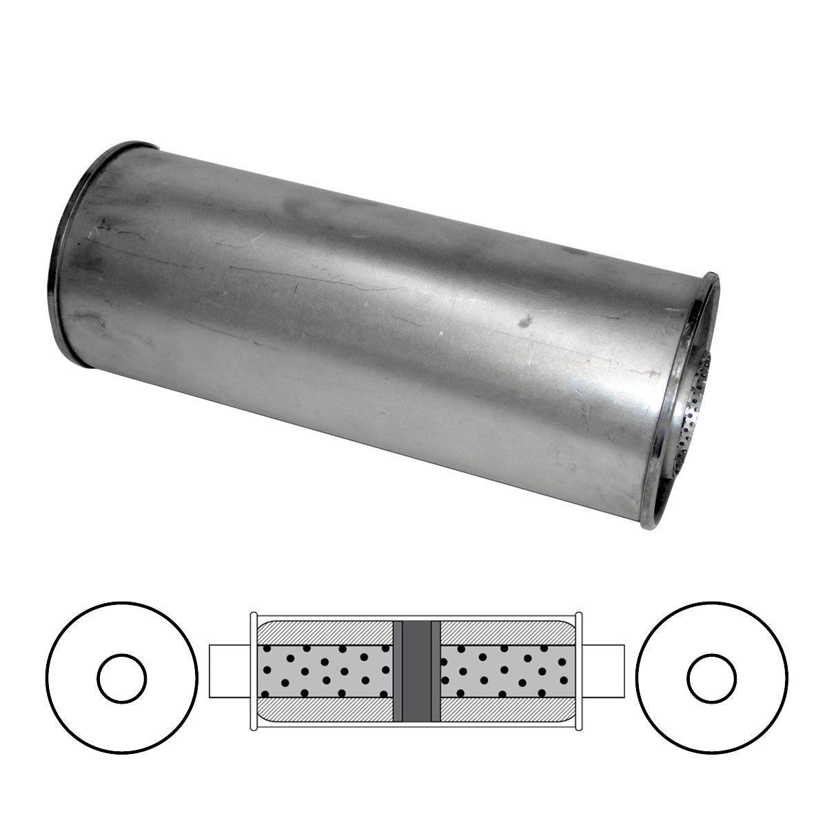 Universal Muffler6" Round, 14" Long, 3"  Centre / Centre  Chambered
