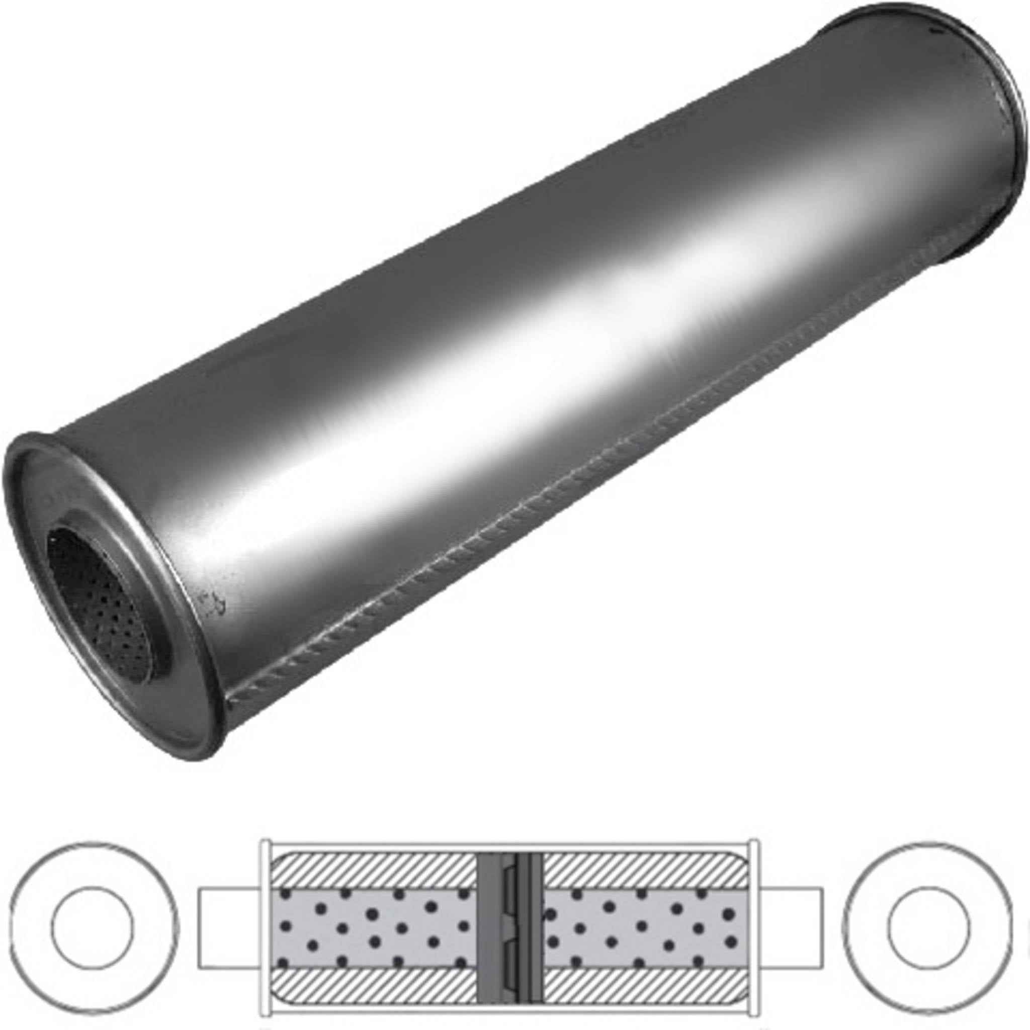 Universal Truck Muffler - 150mm(6") Round, 600mm(24") Long, Internal diameter 063mm(2-1/2"), Centre Centre, Straight Through, Glass Packed, Chambered, Aluminised Steel