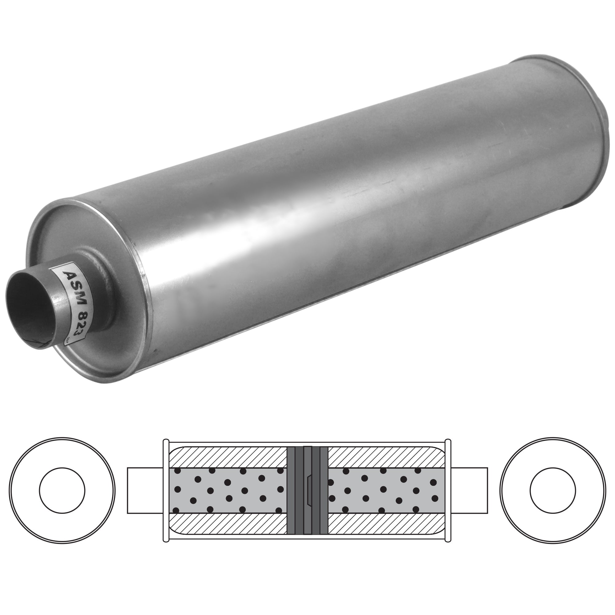 6" Round, 24" Long, ID 2 1/4" C/C Baffled, Aluminised