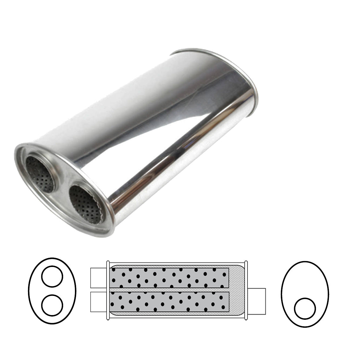Universal Muffler8 X 5 14" LONG  Offset / Dual Out Stainless Megapower Glass Packed