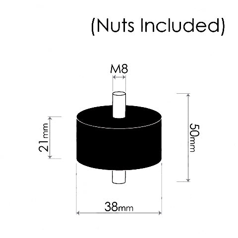 Cotton Reel Mounts - Rubber diameter 38mm, Rubber thickness 21mm, Total height 50mm, Thread M8, Shape ROUND