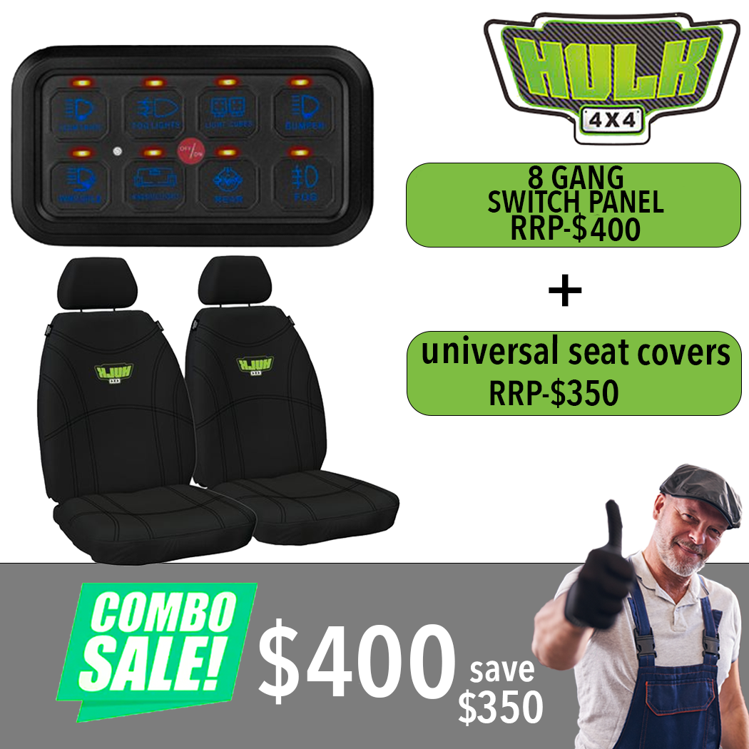 COMBO: 8 Gang Switch Panel + Universal Seat Covers