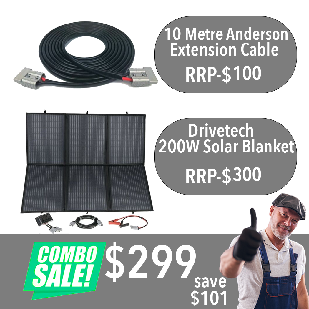 COMBO: 10M Anderson to Anderson Extension Cable + Drive Tech 200W Solar Blanket