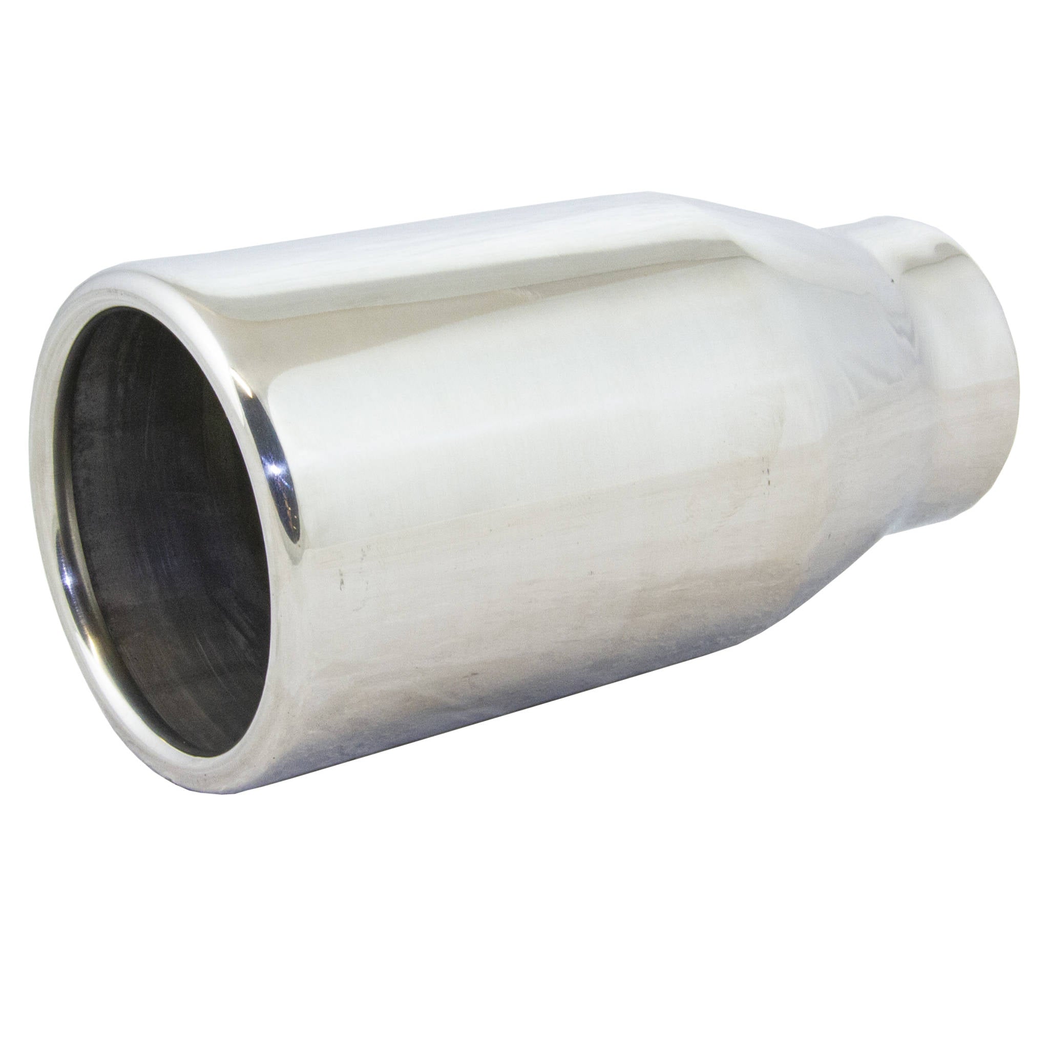 Exhaust Tip Straight Cut / Rolled In - Inlet diameter 50mm(2"), Outlet diameter 75mm(3"), Length 150mm(6"), 304 Stainless Steel, Alternate part no. RX302