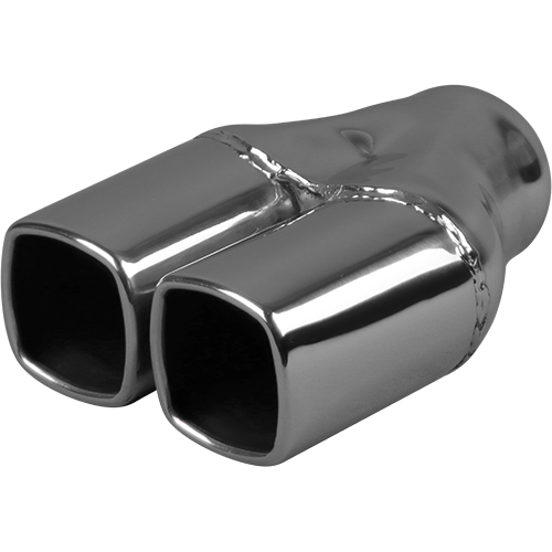 Exhaust Tip Y-Piece / Square Straight Cut / Rolled In - Inlet diameter 51-76mm(2" - 3"), Outlet...