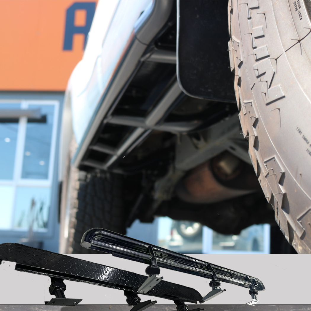 Manufactured from 52mm diameter/ 3mm wall premium grade steel tubing and reinforced with 52mm diameter inner steel tubes, the rocksliders dual rail structure, can withstand most off road obstacles, giving your vehicle’s side seals the ultimate protection. Unlike aluminium side steps, the rockarmor steel steps will not kink.