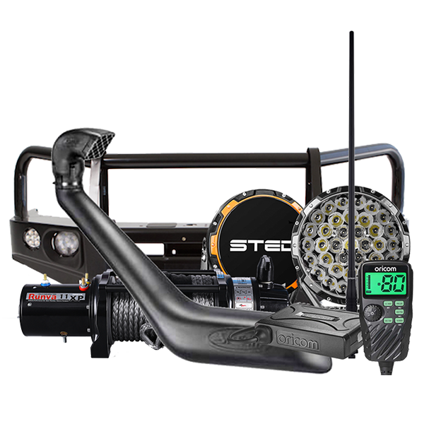 Exclusive to Aussie OffRoad, the Weekend Warrior Pack combines some of the best 4x4 Accessory brands, that will enhance your 80 Series to go further! Once fitted, the weekend warrior Pack will provide your Landcruiser vital on & off-road protection, superior night vision, off road recovery assurance, the ability to drive through deep water crossings plus the capability to communicate with other 4x4u2019s or any emergency services when needed.