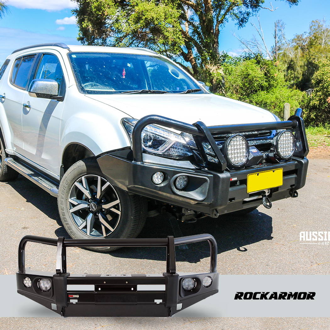 The Rockarmor Bull Bar is finished with a high quality powder coat that will withstand Australia’s harsh weather conditions and comes complete with L.E.D fog lights, L.E.D indicators, splash plates, bumper guards as well as provisions for high lift jack use.