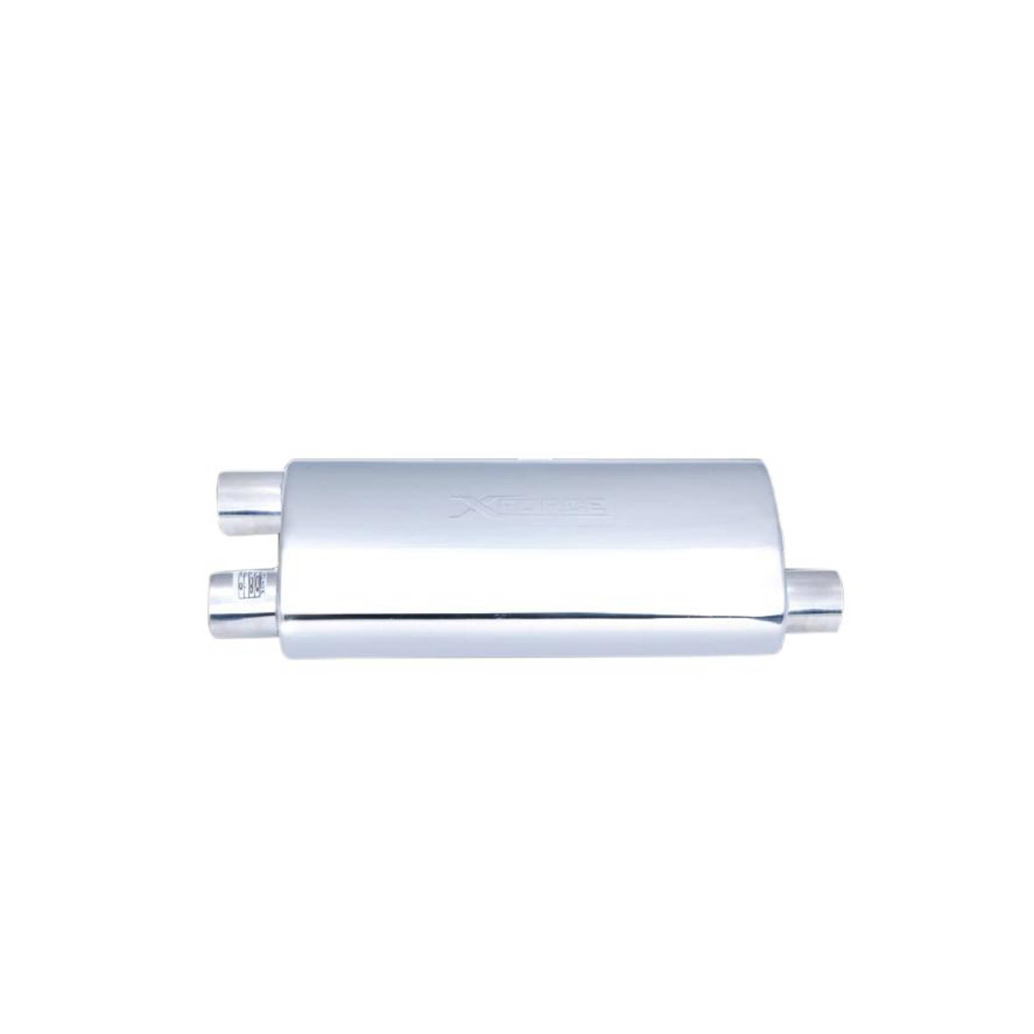 Exhaust Cannon / Single side In / Dual side Out - 250mm(10") x 150mm(6") Oval, Inlet diameter 75mm(3"), Body Length 508mm(20"), Outlet diameter 63mm(2-1/2"), Stainless Steel