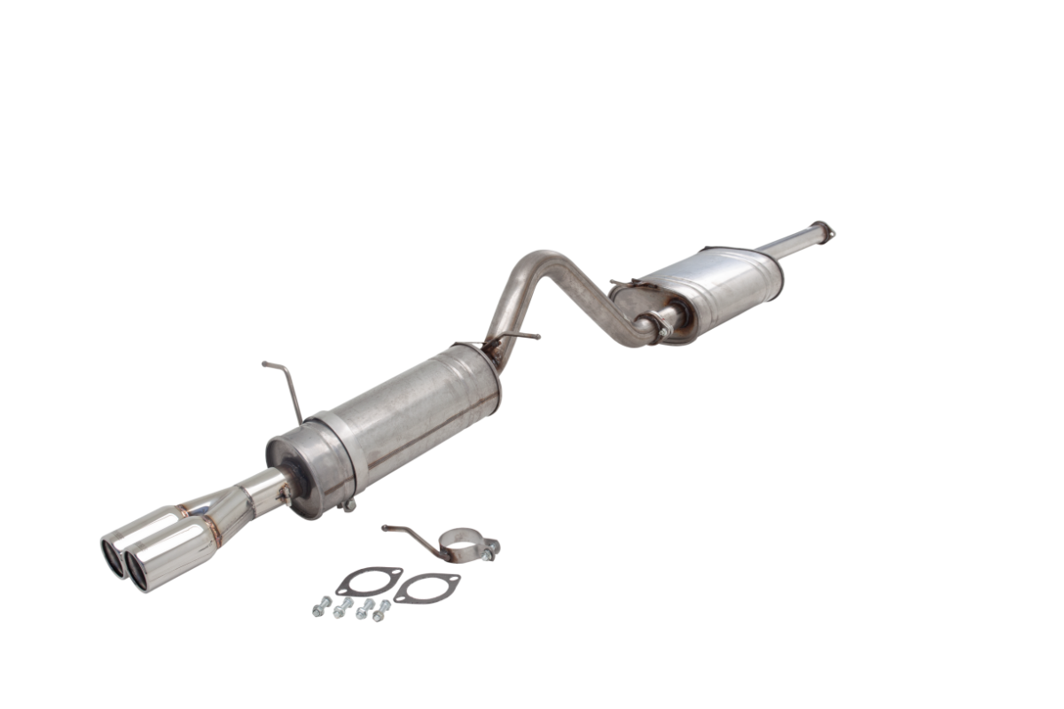 Single 2.5" Cat Back System with Oval Muffler and Resonator Dual 3" Tips .